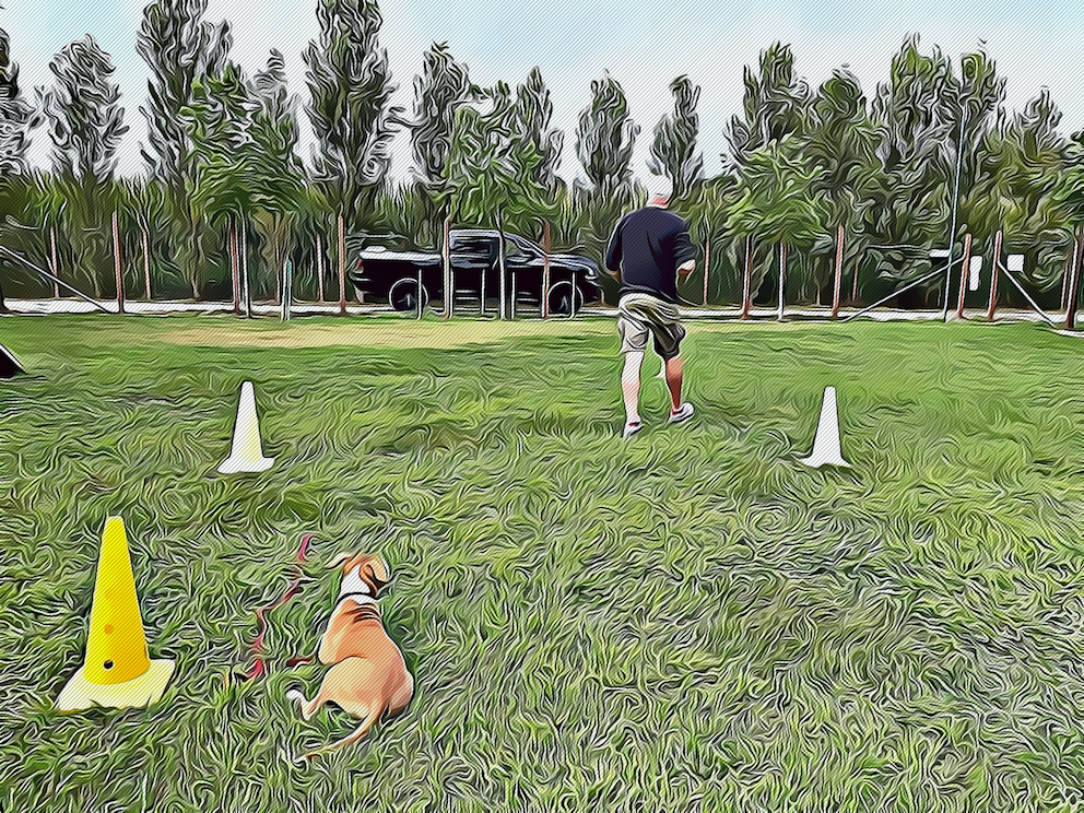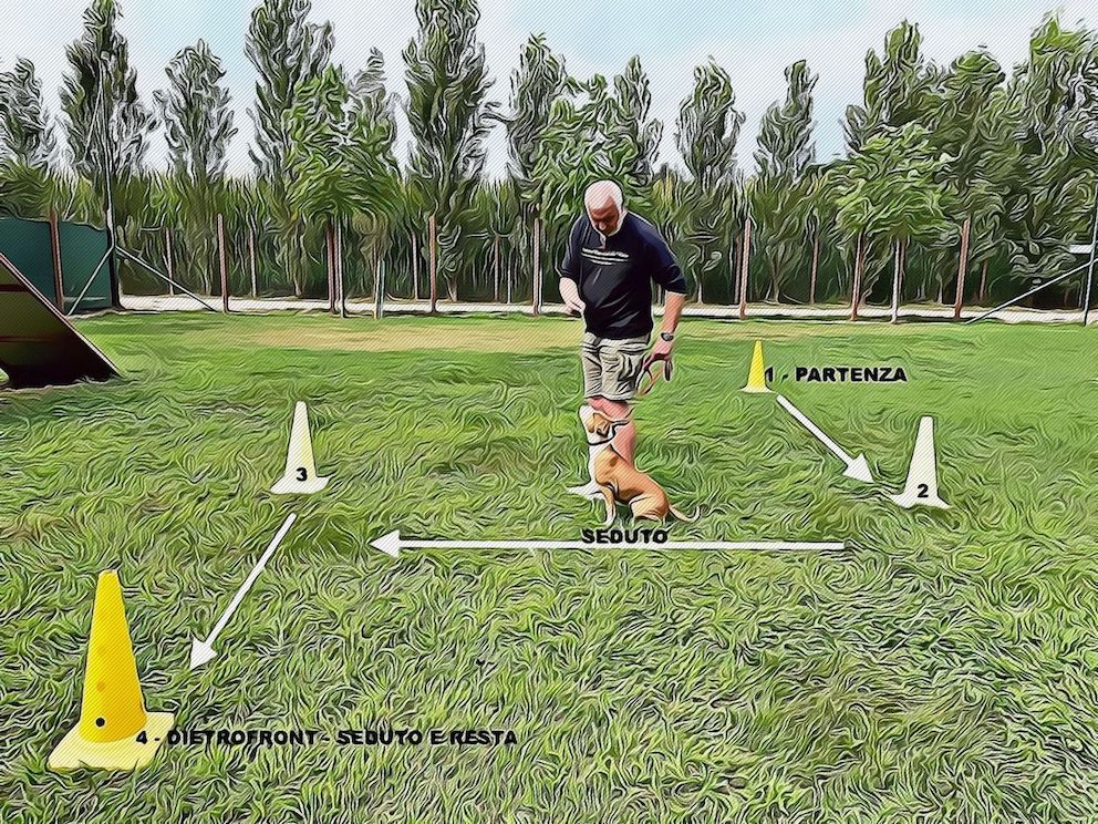 - Date il comando RESTA e ritornate (senza il cane) al cono numero 1.